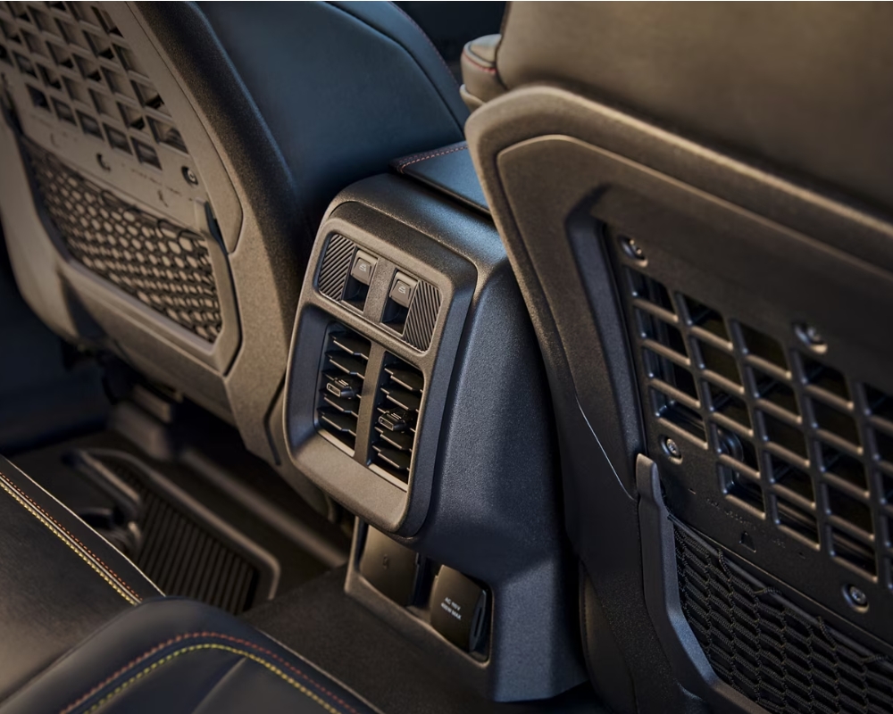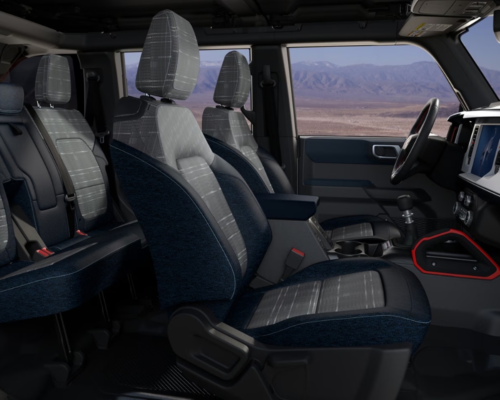 On the outside, the Big Bend carries that iconic Bronco look, bold, upright, and purpose-built—with 17-inch Carbonized Grey-painted aluminum wheels and all-terrain tires that are ready to get dirty. The removable doors and roof add a sense of freedom and open-air excitement, perfect for summer trips and backcountry exploring.