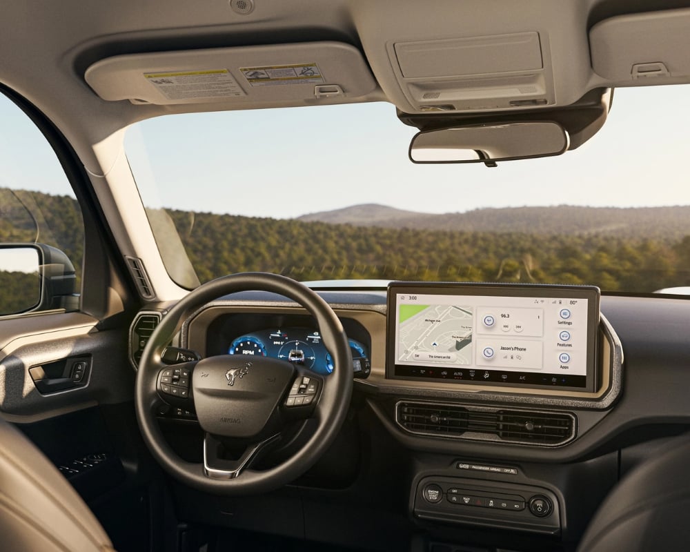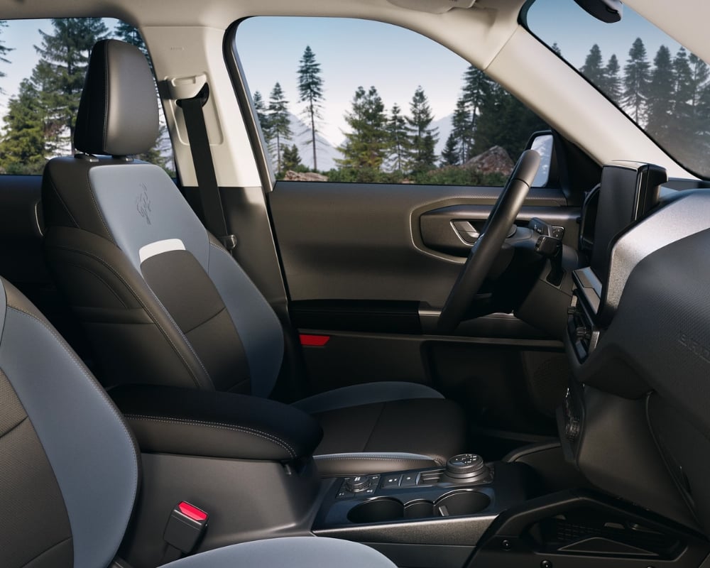 The Bronco Sport comes with the standard 1.5-litre EcoBoost engine that delivers 181 horsepower, providing enough strength. For more power, the available 2.0-litre EcoBoost engine pushes out 250 horsepower, making every drive exciting. Both engines feature Auto Start-Stop Technology, boosting fuel efficiency without sacrificing performance. With 4x4 capability standard on all models, the Ford is ready for any road condition. The five standard G.O.A.T. Modes adjust the SUV’s performance to match different surfaces, from sand to mud to snow. Steel-plated bumpers add durability, while 1-Pedal Driving makes off-road handling smoother. This SUV can tow up to 2,200 lbs, making it easy to bring along a trailer, bike, or small boat.
