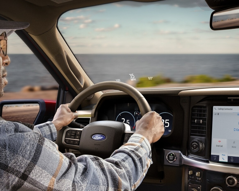 Inside the F-150 Lariat, modern technology fits seamlessly into daily life. The 12.0-inch digital productivity screen sits right in front of the driver, offering clear, useful information. Wireless Apple CarPlay and Android Auto keep devices connected without messy cables, and music comes through with rich sound on the available B&O Sound System by Bang & Olufsen with eight speakers. Drivers can enjoy comfort from heated and ventilated front seats, a heated steering wheel, and keyless entry. Features like power door locks, fog lights, and push-button start add convenience, making each trip feel smooth and simple. The cabin feels like a space to relax or get ready for the day’s work, whether heading into Fort Saskatchewan or exploring the roads leading to Elk Island National Park.