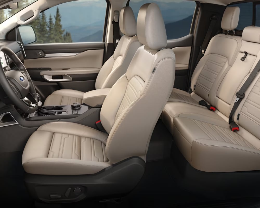 The 2025 Ranger isn’t just about raw power, it’s smartly designed too. The updated exterior features bold new grilles, available LED projector headlamps, and strong, chiseled body lines that hint at the strength underneath. Step inside, and you’ll find a cabin that’s comfortable, practical, and packed with thoughtful touches. Available features like dual-zone electronic automatic temperature control, premium materials, and a flow-through centre console make every drive more enjoyable, whether you’re running errands in Fort Saskatchewan or heading out for a road trip.